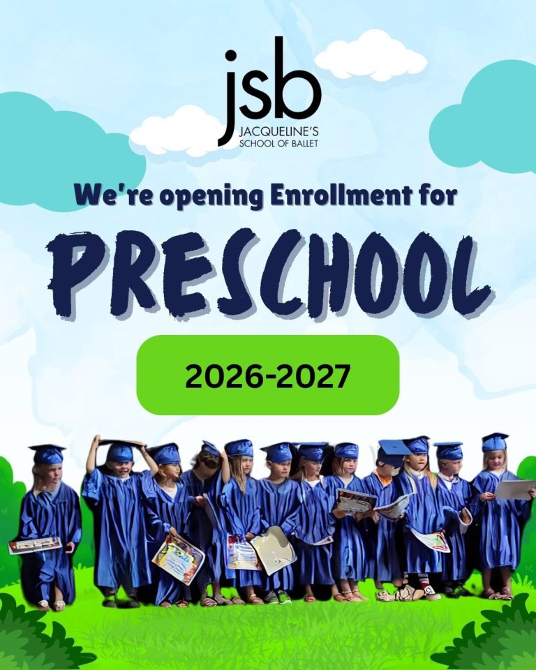 Jacqueline’s School of Ballet now in our 8th year of JSB Performing Arts Preschool, invite your pre-kindergarten 4, 5 and some mature 3 1/2 year old children (by Sept. 1st) to enroll in our day time preschool. With a 40 plus year tradition of exceptional ballet and dance training coupled with performance opportunities for children of all ages, we look forward to incorporate our experience and perspective into this new division.